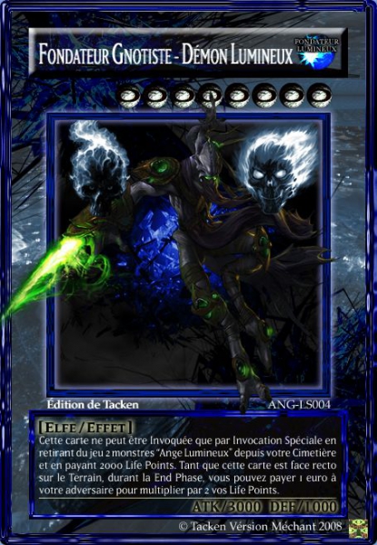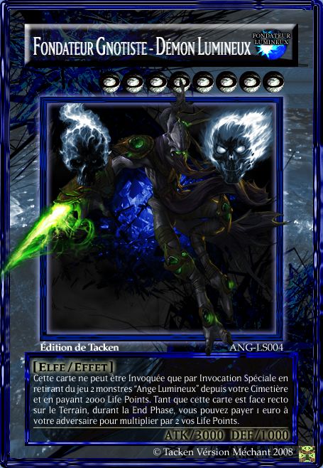 Je vous présente le dernier « Fondateur » de ma série. Le gnotiste suprême. Le terme gnotiste fut choisi par moi par elle qualifie une secte religieuse très peu connu. Si je devais donner une petite histoire au gnotiste se seraient des anges qui se sont laissé abusés par des mensonges. Il ont donc rejoint de façon inconscient les forces maléfiques. C’est la raison que même si dans le titre, il est marqué « Démon Lumineux », j’ai décidé de donner le titre de elfe.