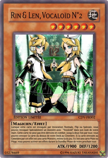 Le deck "Choeur des Vocaloïd" étant basé sur la défausse de cartes depuis le deck, on comprend aisément la ressemblance de leur effet avec ma première carte, Hatsune Miku, Vocaloïd N°1.