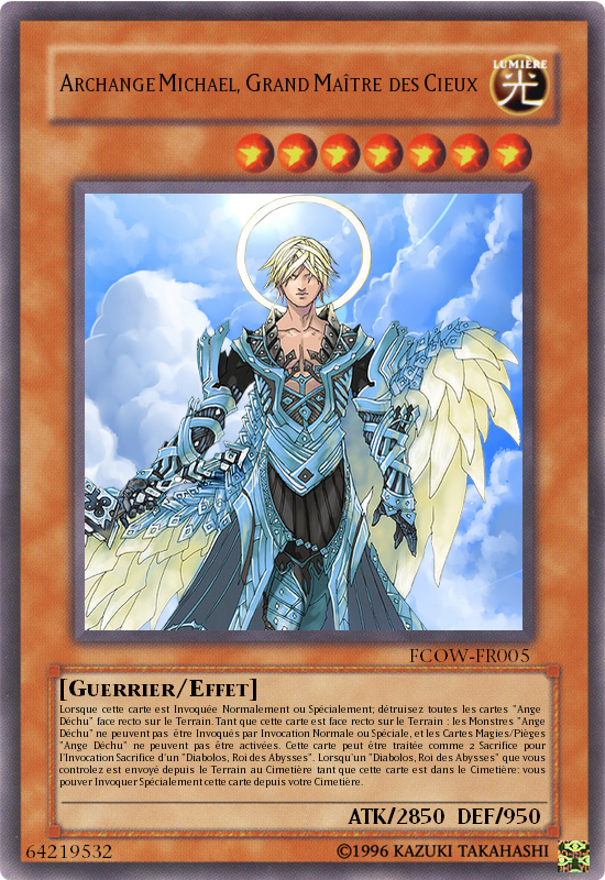 Lorsque cette carte est Invoquée Normalement ou Spécialement ; détruisez toutes les cartes "Ange Déchu" face recto sur le Terrain. Tant que cette carte est face recto sur le Terrain : les Monstres "Ange Déchu" ne peuvent pas être Invoqués par Invocation Normale ou Spéciale, et les Cartes Magies/Pièges "Ange Déchu" ne peuvent pas être activées. Cette carte peut être traitée comme 2 Sacrifices pour l'Invocation Sacrifice d'un "Diabolos, Roi des Abysses". Lorsqu'un "Diabolos, Roi des Abysses" que vous contrôlez est envoyé depuis le Terrain au Cimetière tant que cette carte est dans le Cimetière : vous pouvez Invoquer Spécialement cette carte depuis votre Cimetière.