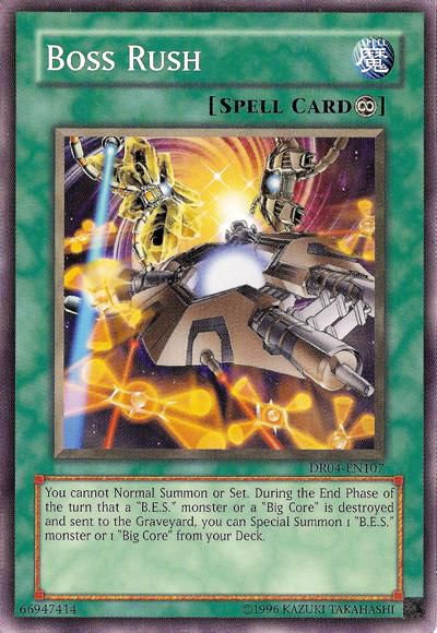 The controller of this card cannot Normal Summon or Set. During the End Phase of the turn that a monster on your side of the field that includes "B.E.S." in its card name, or is named "Big Core", is destroyed and sent to the Graveyard, you can Special Summon from your Deck 1 monster that includes "B.E.S." in its card name, or is named "Big Core".