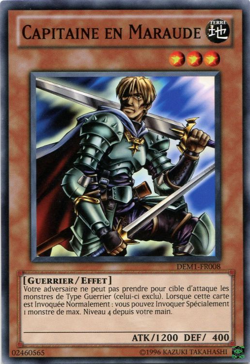 Votre adversaire ne peut pas prendre pour cible d'attaque les monstres de Type Guerrier (celui-ci exclu). Lorsque cette carte est Invoquée Normalement : vous pouvez Invoquer Spécialement 1 monstre de Niveau 4 max. depuis votre main.