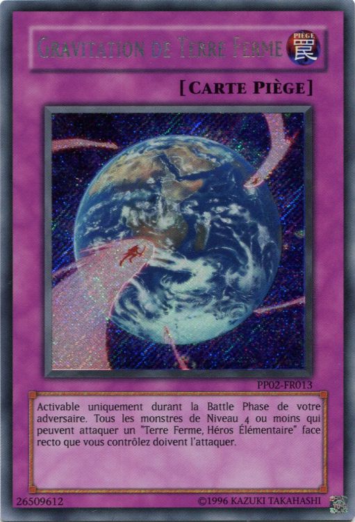 Activable uniquement durant la Battle Phase de votre adversaire. Tous les monstres de Niveau 4 ou moins qui peuvent attaquer un "Terre Ferme, Héros Elémentaire" face recto que vous contrôlez doivent l'attaquer.