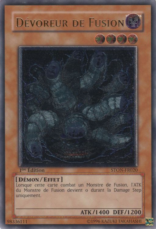 Lorsque cette carte combat un Monstre de Fusion, l'ATK du Monstre de Fusion devient 0 pendant la Damage Step uniquement.