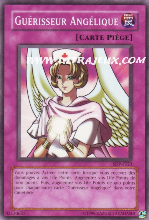Vous pouvez Activer cette carte lorsque vous recevez des dommages à vos Life Points. Augmentez vos Life Points de 1000 points. Puis, augmentez vos Life Points de 500 points pour chaque autre carte "Guérisseur Angélique" dans votre Cimetière.