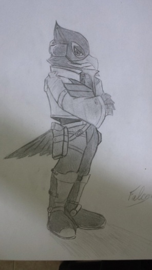 Bonjour a tous aujourd'hui nous sommes la veille de la sortie de SSB du 3ds, donc voici le dessin d'un perso qui m'a longtemps fait rêver, voici donc sans plus attendre Falco le grand pilote de l'équipage Starfox :