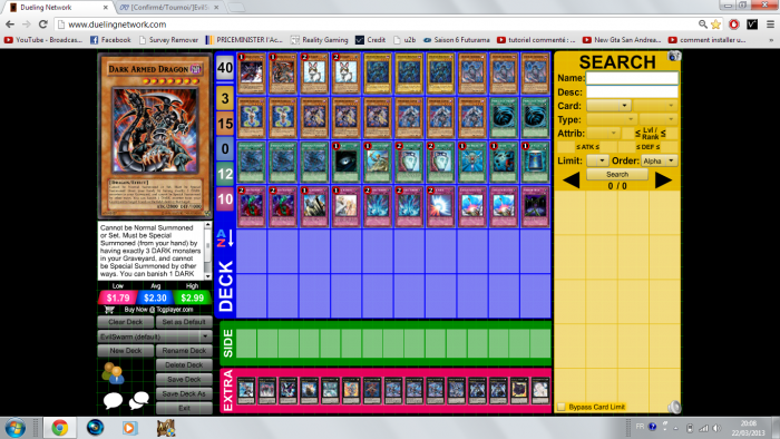Si les autres ne répondaient pas, c'est parce que tu n'écris pas les noms en entier. La chance, j'ai rép. Si tu ne veux pas être locke et être répondu, lis la charte présente sur le forum concernant la création de topic et de decks.