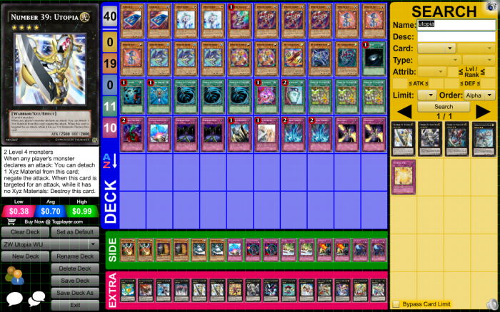 Salut, je joue aussi un deck Utopia ( http://www.finalyugi.com/yugioh-forum-viewtopic-6-55647-intermediaire-dn-utopie.html )